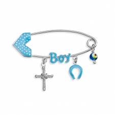 Ασημένια παραμάνα 5cm με διακοσμητικά στοιχεία "Σταυρό - Boy - Πέταλο - Μάτι"